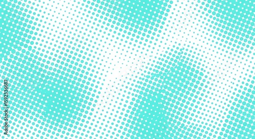 Abstract halftone pattern with turquoise dots on a white background, creating a textured and faded effect.