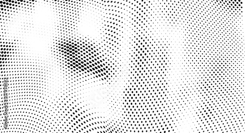 Abstract halftone texture. Chaotic waves of dots. Black and white background