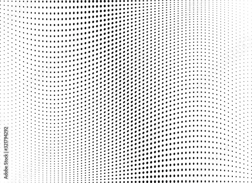 Abstract halftone wave dotted background. Futuristic twisted grunge pattern, dot, circles. Vector modern optical pop art texture for posters, business cards, cover, labels mock-up, stickers layout