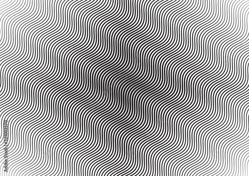 Abstract halftone wave line background. Monochrome pattern with varying line thickness. Vector modern pop art texture for poster, sites, business cards, cover, postcard, design, labels, stickers.