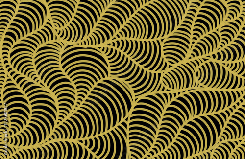 Abstract hand drawn black and gold wavy pattern.Abstract wavy background, optical art, opart striped. Raster waves, geometry line stripes