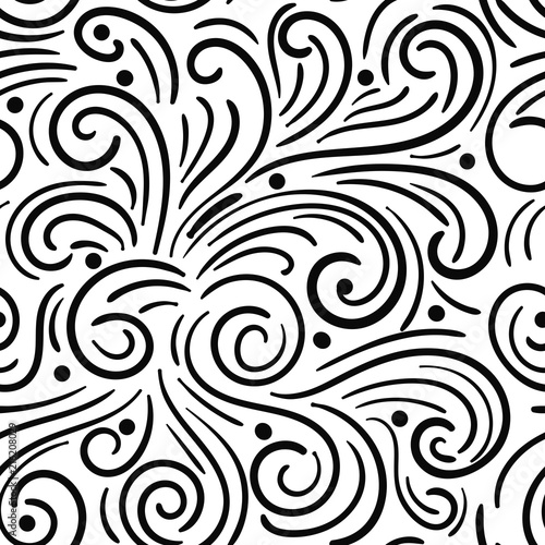 Abstract hand drawn doodle thin line wavy seamless pattern. Curly linear messy background. Vector illustration.