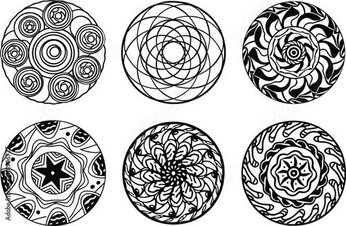 Abstract Hand Drawn Round Doodle Shapes and Textures Set Isolated on White.