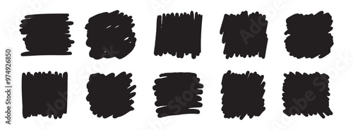 Abstract hand drawn scribble set art. Vector grunge brush square. Sketch graphic design isolated on white background.