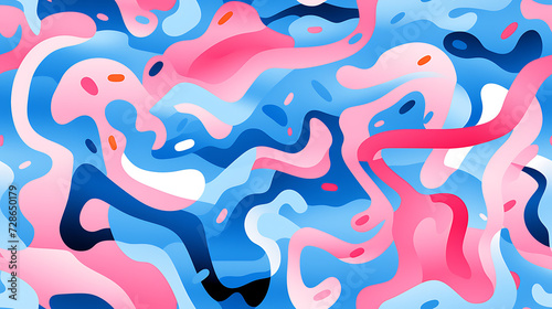 abstract hand pattern, blue and pink, smooth lines, organic patterns, flat, limited shading, bold graphic - Seamless tile. Endless and repeat print.