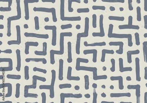 Abstract hand-drawn maze pattern illustration, brush strokes, textured, repeat design, for backgrounds and designs.
