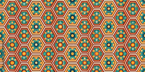 Abstract Hexagon Mosaic Pattern with Geometric Shapes and Vibrant Colors, pattern, mosaic, hexagon