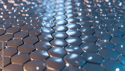 Abstract Hexagon Pattern with Metallic Surface and Reflective Light