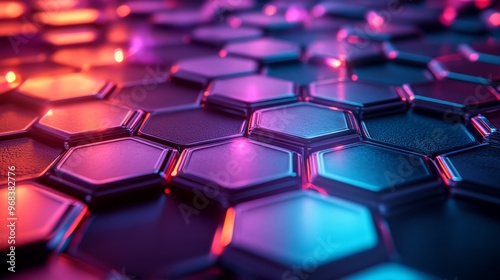 Abstract Hexagon Pattern with Neon Lights