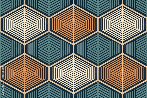 Abstract Hexagonal Geometric Pattern with Linear Design and Earthy Tones