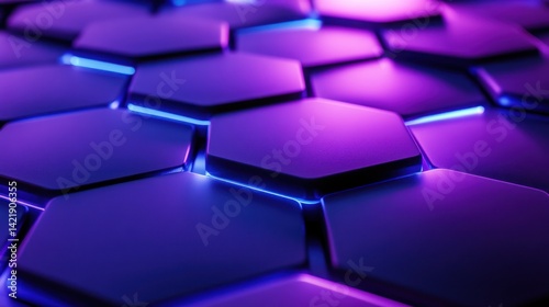 Abstract Hexagonal Pattern with Neon Lights: Futuristic Design