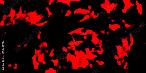 Abstract high-contrast with irregular, organic red shapes scattered across a solid black background. Red blotches resemble lava or molten. Edgy, high-impact visual designs or backgrounds