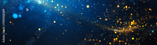Abstract holiday background featuring dark blue and gold particles