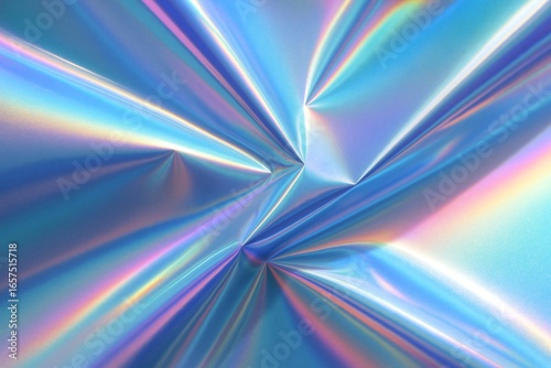 Abstract holographic folds with iridescent light reflections in blue and violet hues on smooth shimmering background. Futuristic light concept design. Ai generative