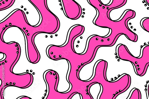 Abstract horizontal background with pink, white and black waves, lines and dots. Trendy vector illustration. Pink, white and black wallpaper, decoration, banner, card, template, etc.