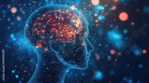 Abstract Human Head Profile with Neural Connections on Blue Background