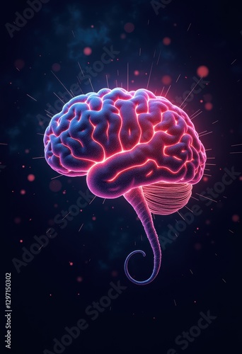Abstract illustration of a glowing brain, symbolizing intelligence and creativity against a dark background. perfect for projects related to science, technology, and innovation.