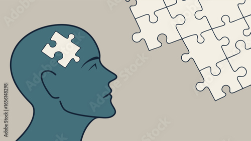 Abstract Illustration of a Head with a Missing Puzzle Piece.