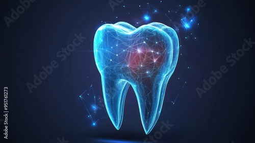 Abstract Illustration of a Tooth with Glowing Lines and Points