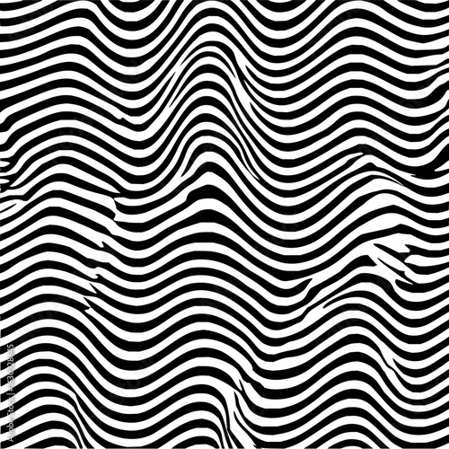 Abstract illustration of black and white wavy lines creating an optical illusion pattern design effect