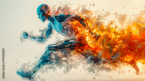 Abstract illustration of disabled athlete with metal modern prosthetic legs. Running at high speed. Paralympics. Running Paralympian