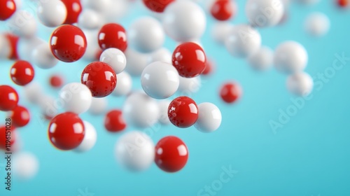 Abstract Illustration of Floating Red and White Spheres on Blue Background