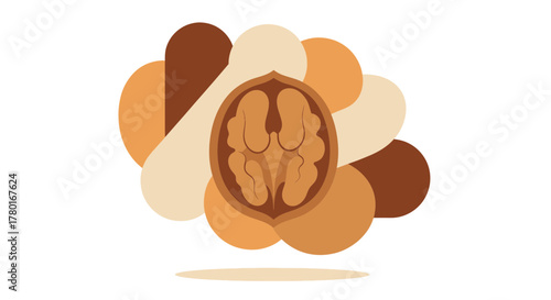 Abstract Illustration of Walnut Kernel with Creative Design on A White Background