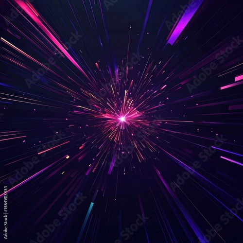 Abstract image featuring a bright central point emitting vibrant pink and purple rays, creating a sense of cosmic expansion and energy.