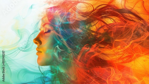 Abstract image of a girl in a colorful, surreal art style representing psychological health and mental wellbeing concepts. Vibrant and thought-provoking illustration.