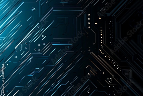 Abstract image of a glowing futuristic circuit board featuring neon blue lines, digital patterns, and intricate technology-inspired details.