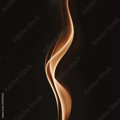 Abstract image of a swirling, amber-toned smoke plume against a stark black background, creating a visually striking and elegant design element. : Generative AI