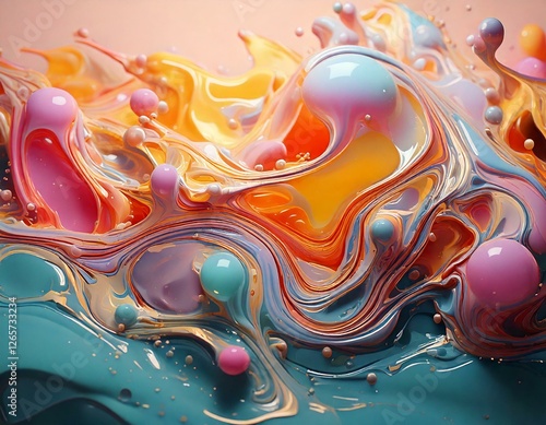 Abstract image of colorful paint blending.Smooth, colorful melting shapes with a glossy, liquid-like texture. Soft lighting and an abstract, eye-catching look. Pastel.