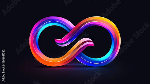 Abstract Infinity Symbol: A vibrant and futuristic rendition of the infinity symbol, rendered in bold, iridescent hues against a dark background. The symbol is composed of flowing.