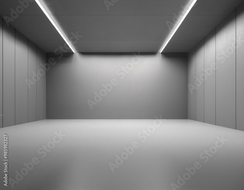 Abstract interior design of modern showroom with empty white concrete floor and gray wall background - 3d rendering