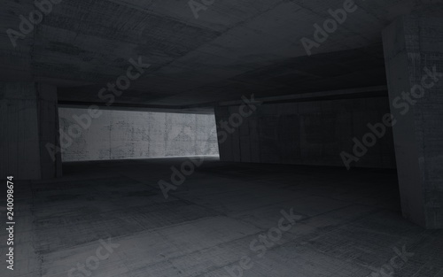Abstract interior of glass and concrete. Architectural background. 3D illustration and rendering