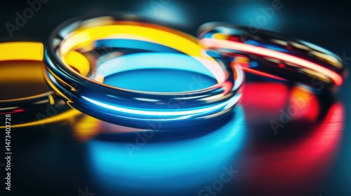 Abstract Intertwined Neon Rings: A vibrant digital art piece showcasing thr