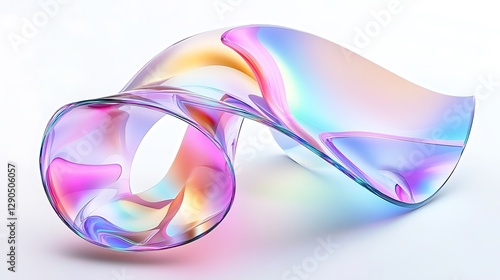 Abstract iridescent glass sculpture, swirling pastel colors, modern art,