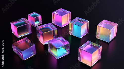 Abstract Isometric Composition of Colorful Glass Cubes with Holographic Effects. AI generated illustration