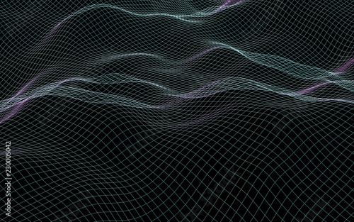 Abstract landscape background. Cyberspace purple grid. Hi-tech network. 3D illustration