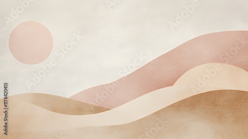 Abstract Landscape Featuring Soft Pastel Hills and Sun