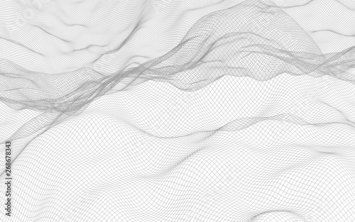 Abstract landscape on a white background. Cyberspace grid. hi tech network. 3d illustration