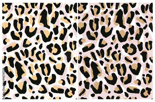 Abstract Leopard Skin Seamless Vector Patterns. Pink, Gold and Black Irregular Brush Spots on a Pastel Pink and Off-White Backgrounds.Abstract Wild Animal Skin Design. Simple Wild Cat Fur Print.