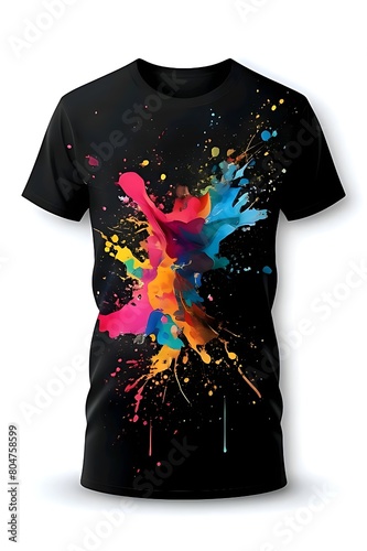 Abstract lifestyle banner design with black t-shirt and colorful splashing shapes