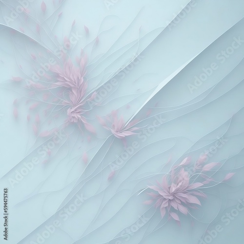 Abstract light background with white lines and pale pink flowers, created with Generative AI technology