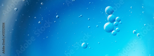 abstract light blue background with oil circles . bubbles of water close up . banner
