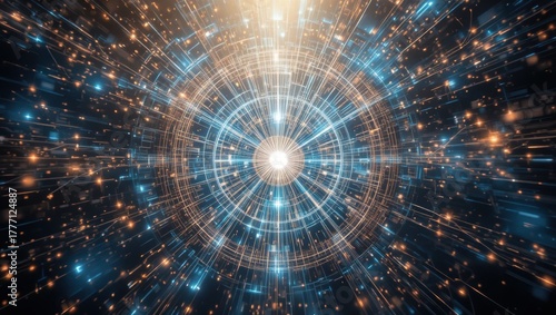 Abstract Light Burst in Cosmic Space with Twinkling Stars and Futuristic Energy Patterns