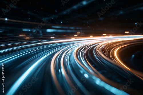 Abstract lights streak through space, conveying speed, innovation, and technological advancement.