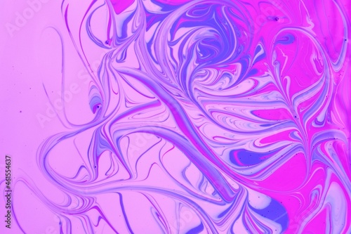 Abstract lilac-pink marble background. Acrylic paint mixes freely and creates an interesting pattern. Bright saturated shades. Background for the cover of a laptop, laptop.