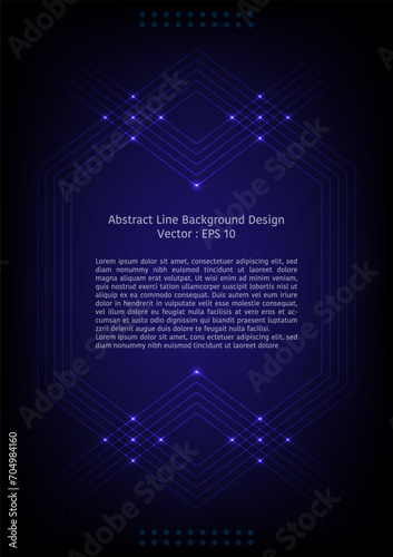Abstract line background design, group of hexagon line frame with light, blue color tone
