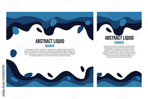 Abstract Liquid Banner Design with Blue Waves and Dynamic Shapes